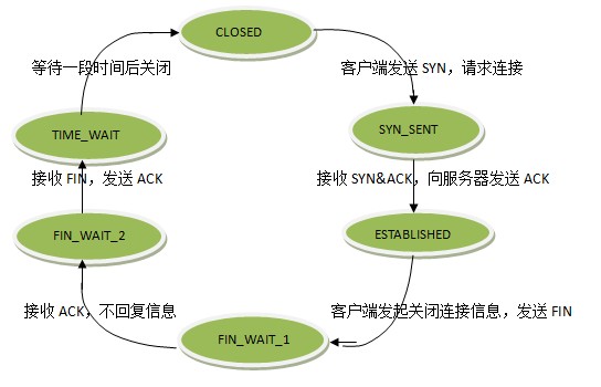 这是因为:虽然双方都同意关闭连接了,而且握手的4个报文也都协调和发送完毕,按理可以直接回到CLOSED状态(就好比从SYN_SEND状态到ESTABLISH状态那样);但是因为我们必须要假想网络是不可靠的,你无法保证你最后发送的ACK报文会一定被对方收到,因此对方处于LAST_ACK状态下的SOCKET可能会因为超时未收到ACK报文,而重发FIN报文,所以这个TIME_WAIT状态的作用就是用来重发可能丢失的ACK报文。