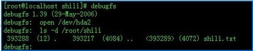 七、显示有<>尖括号的就是我们要找的文件Inode 号 执行logdump –I <393289>